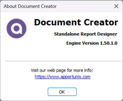 You can check which version of the Document Creator Designer Application you are using by opening the designer, and then choosing the Help | About Document Creator … menu option.