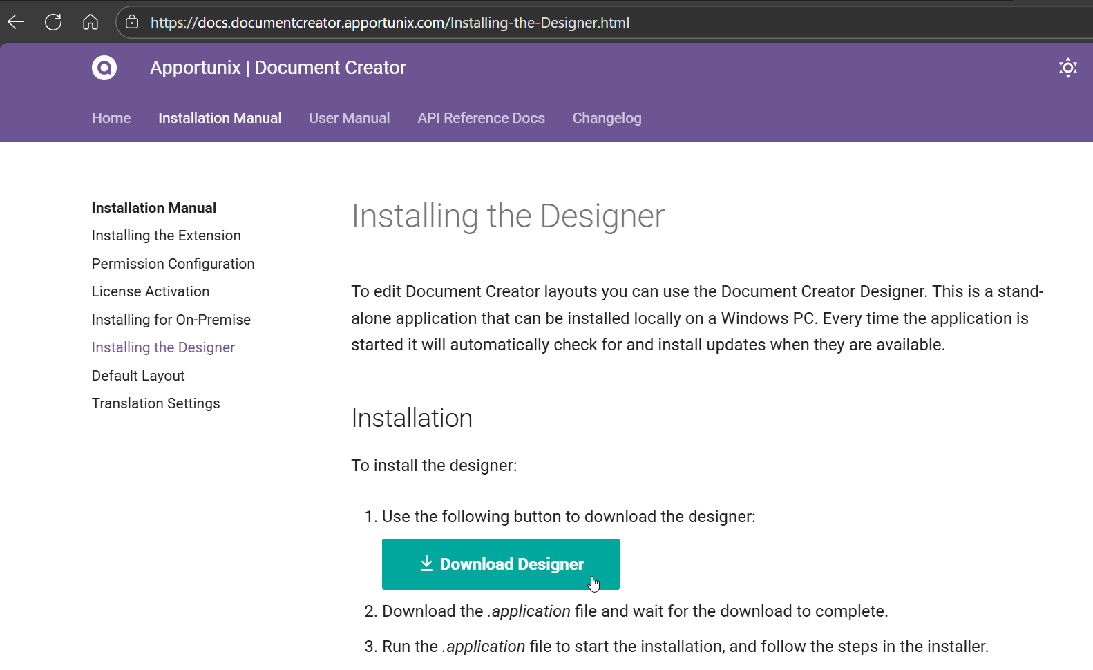- Open the Installing the Designer section of the online installation manual. From there, click on the Download Designer button and follow the instructions found on this webpage.